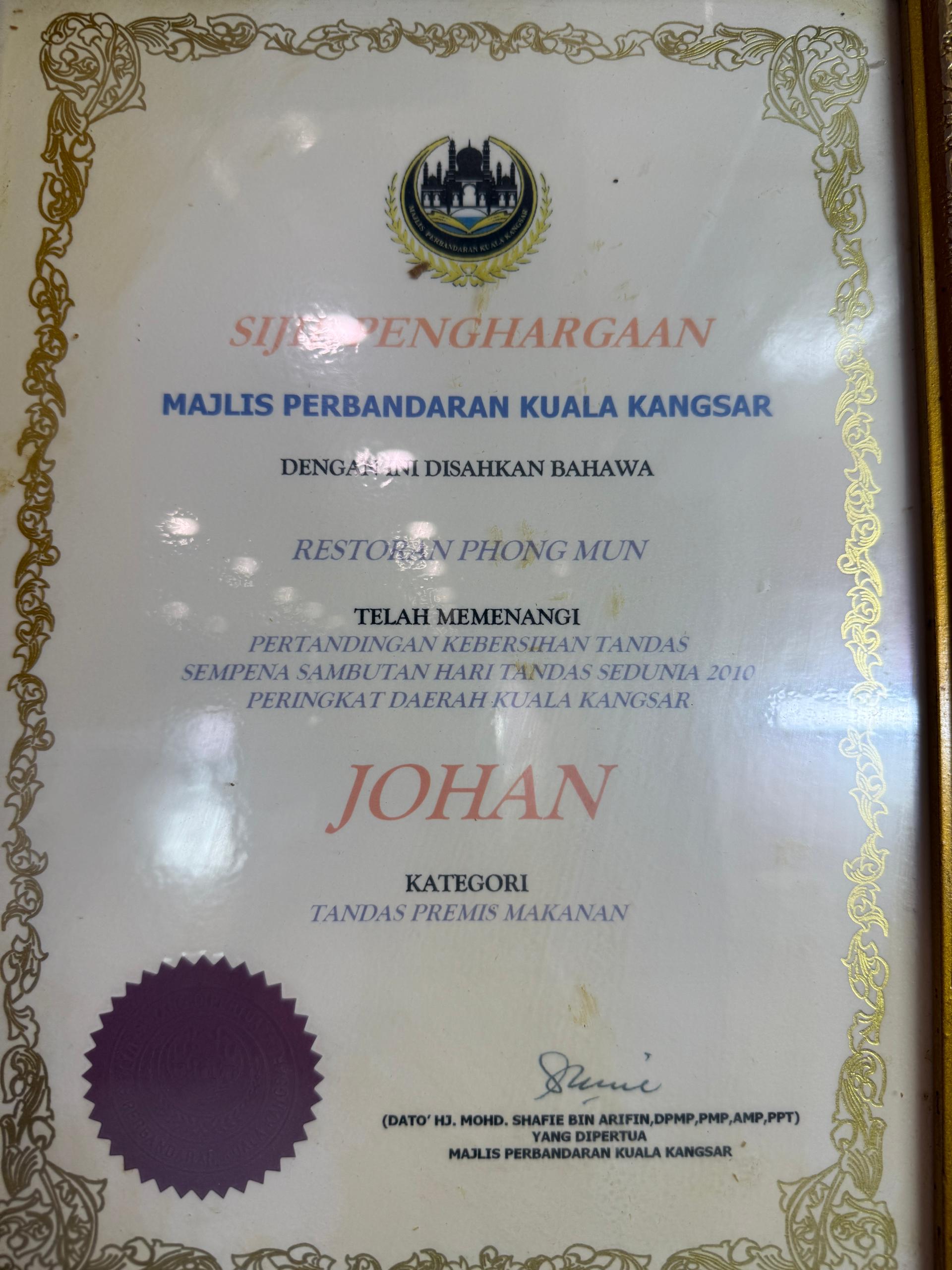 Returning to his hometown of Sungai Siput , Mr. Wong leveraged his vast experience and unique recipes to establish his own air-conditioned Chinese restaurant, “Phongmun Restaurant,” at Komersial Waterfront in 2010. With the support of his family, the restaurant has grown steadily. In 2020, it was recognized as one of the best restaurants in the central and northern regions by the local food and beverage media.